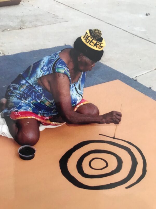 After originally learning her trade whilst doing the background dotting on Yala Yala’s works, Ningura took up painting in her own right following the 1996 Kintore Women’s Painting Project. She had her first solo exhibition with William Mora Aboriginal Art in 2000 and participated in the impressive Kintore Women’s Painting for the Papunya Tula retrospective at the Art Gallery of NSW.