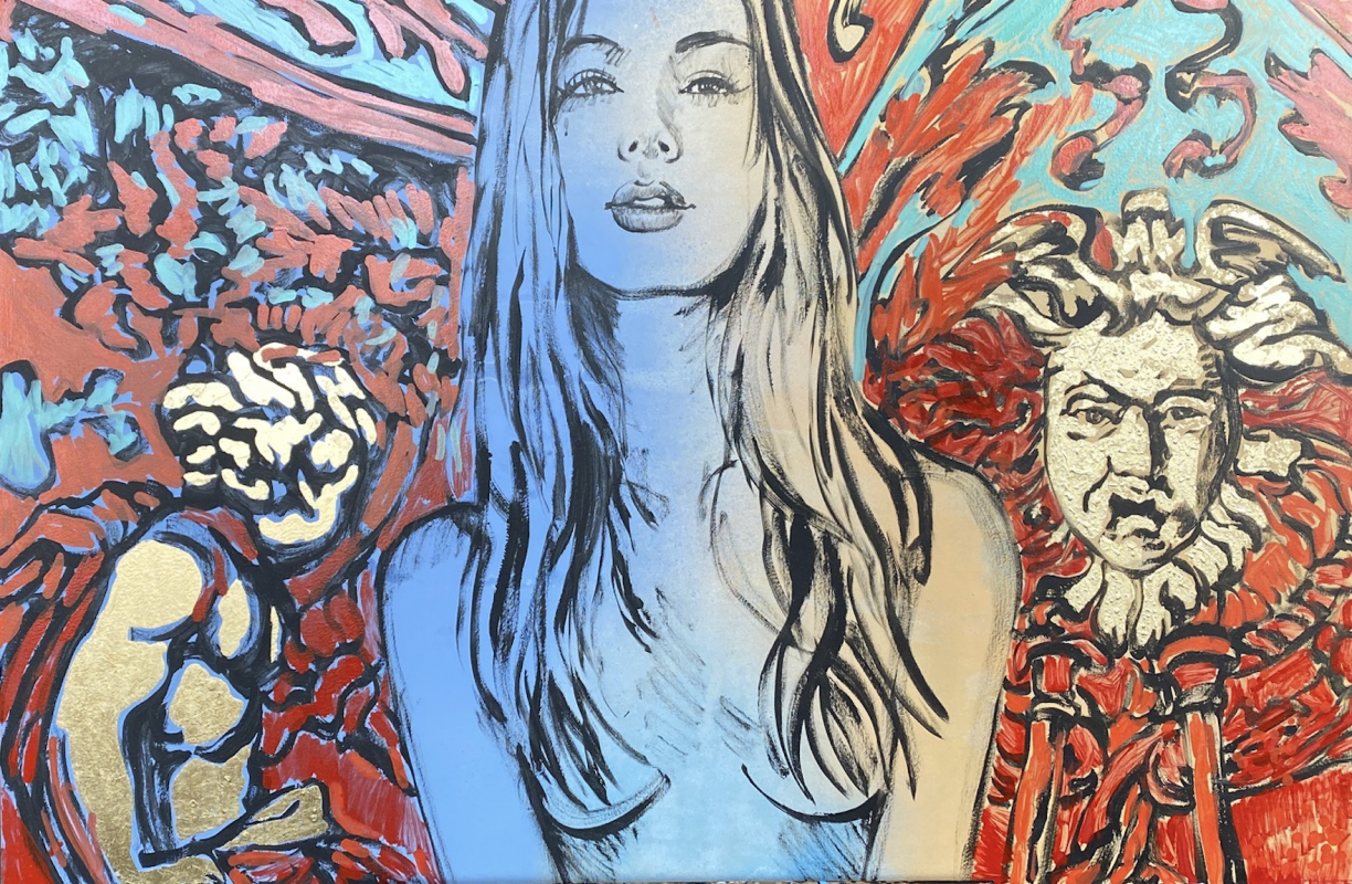 Acrylic, gold and silver leafing